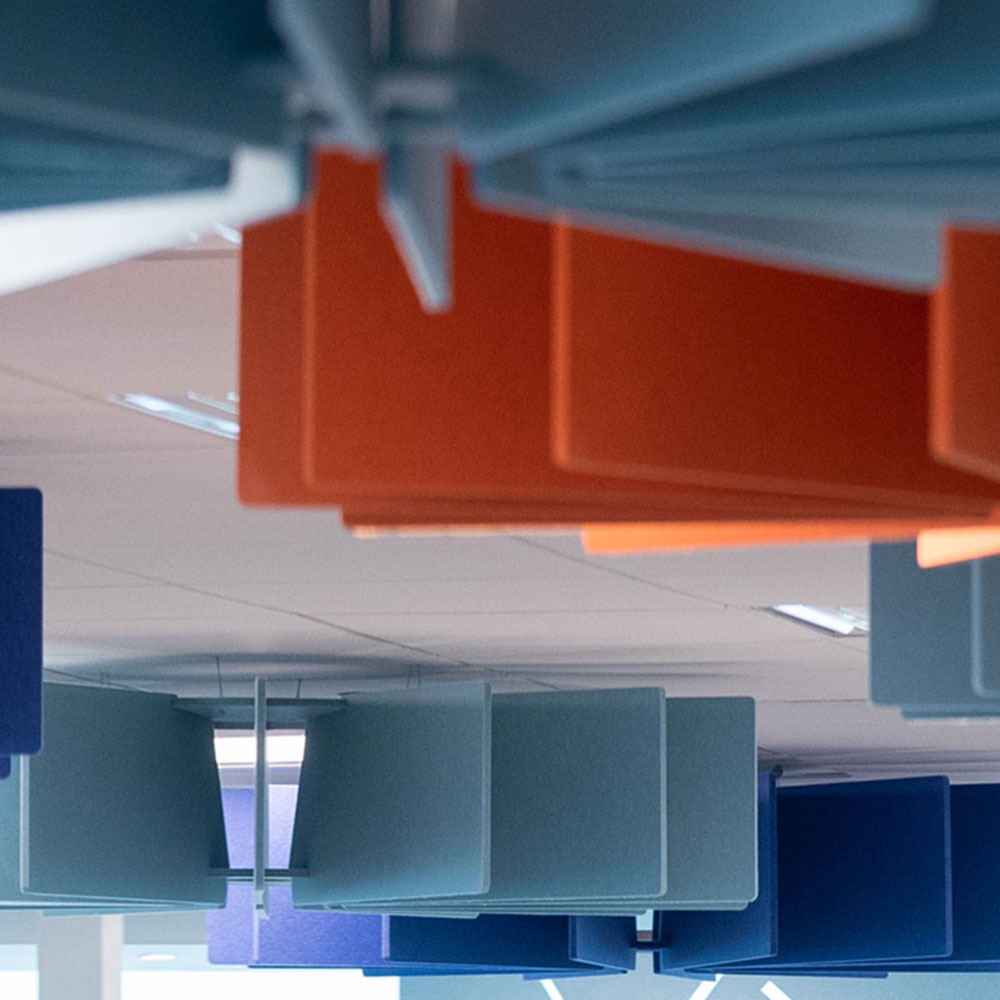 Torus Acoustic baffles that are suspended or direct fixed to ceiling space. A simple out of the box acoustic solution, Lattice™ easily creates a point of interest in any space.